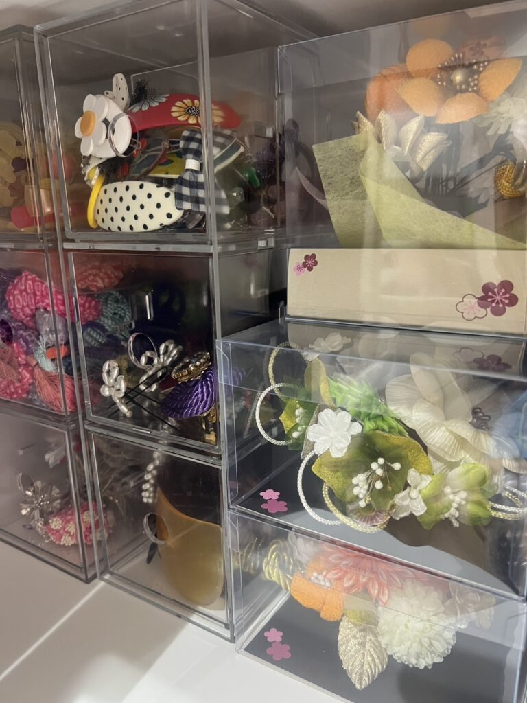中にはメイク室のスタッフより昔からある大先輩の髪飾りもたくさんあります!