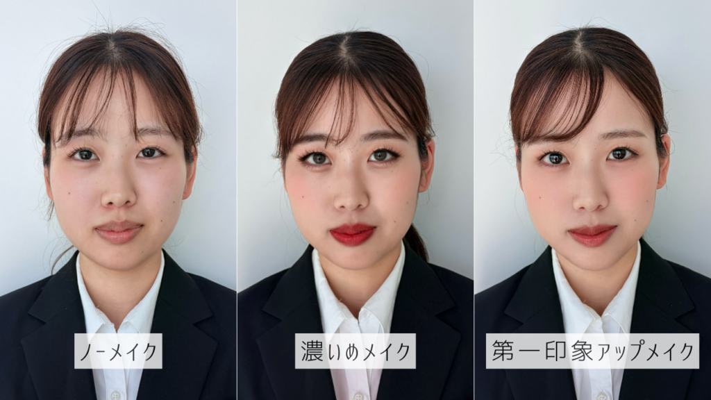 「ノーメイク」「濃いめメイク」「第一印象アップメイク」を比較してみました👇